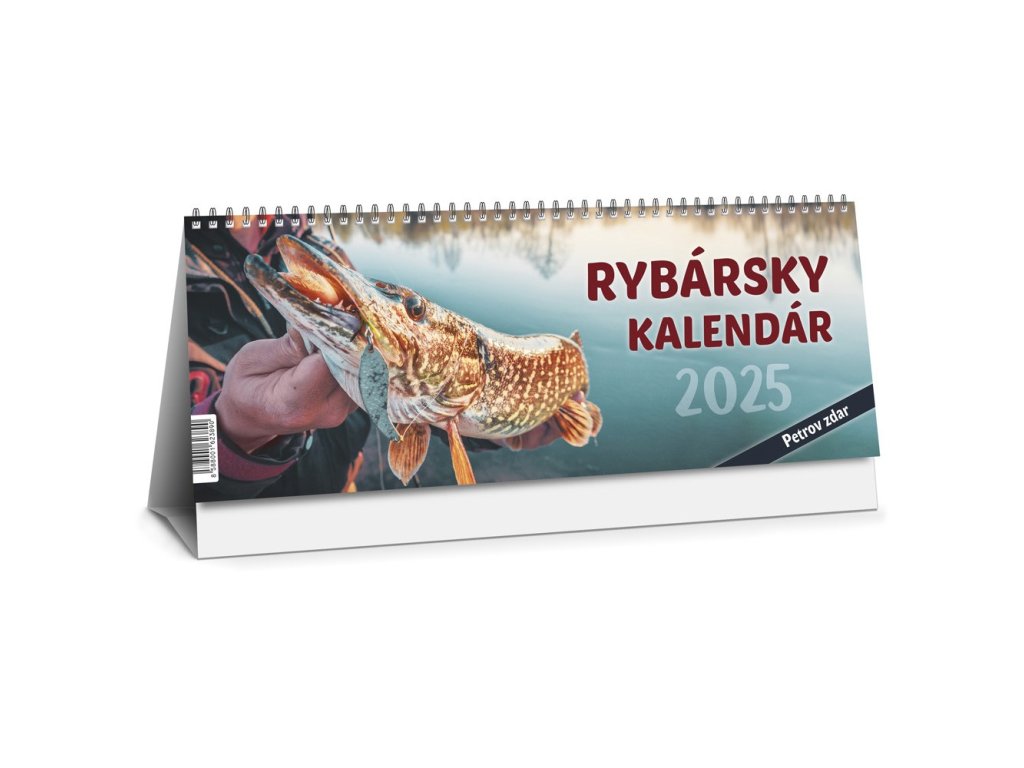 Formát: 300 × 120 mm. Vario špirála, natieraný lesklý papier, 32 strán. Cena za 1 ks výrobku. Praktický rybársky stolový kalendár s aktivitou rýb na celý rok, so zákonnými lovnými mierami rýb a časom individuálnej ochrany. Obsahuje prehľad celoročne chránených rýb a denný čas lovu rýb podľa typov vôd. 28 reálnych fotografií úlovkov z našich revírov. Možnosť potlače na presah podložky (300 x 35 mm).