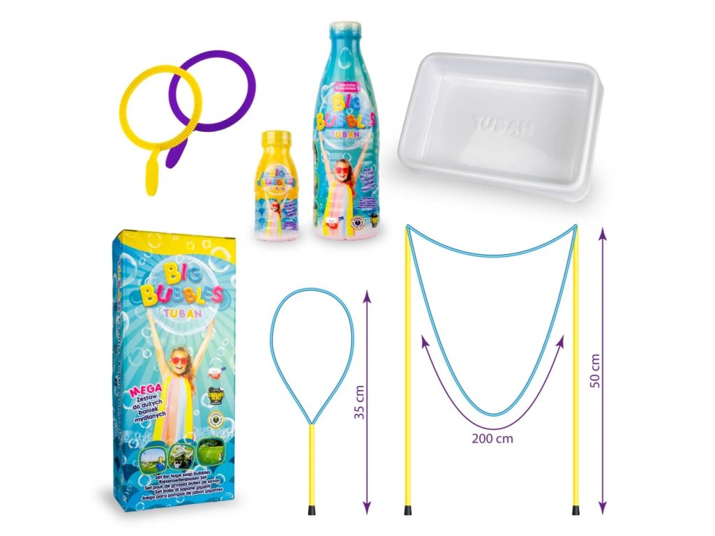 Mega sada na vytváranie mydlových bublín a bublinkových tunelov je skvelá aktivita na narodeninovú párty. Bublifuky vytvárajú krásne a veľké bubliny, ktoré prinášajú radosť a zábavu nielen deťom, ale aj dospelým. Sada obsahuje všetko, čo potrebujete na vytváranie obrovských a dlhotrvajúcich bublín.