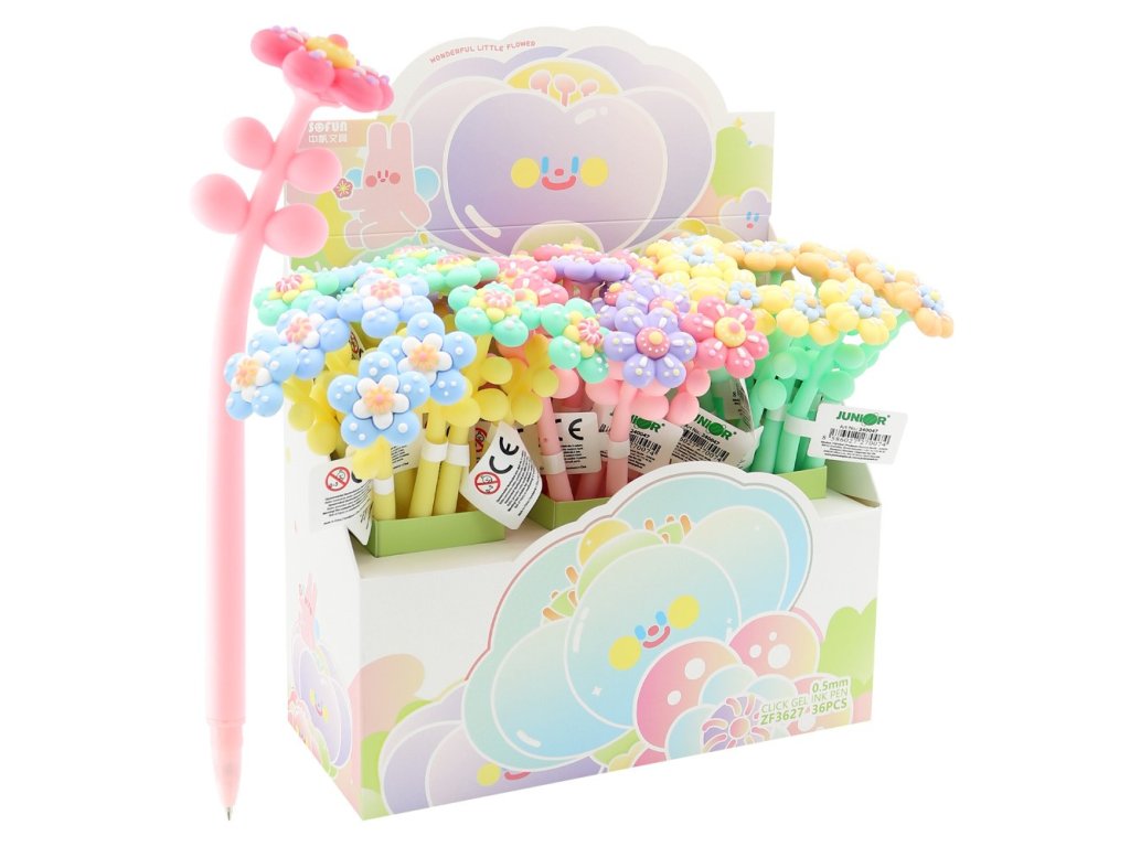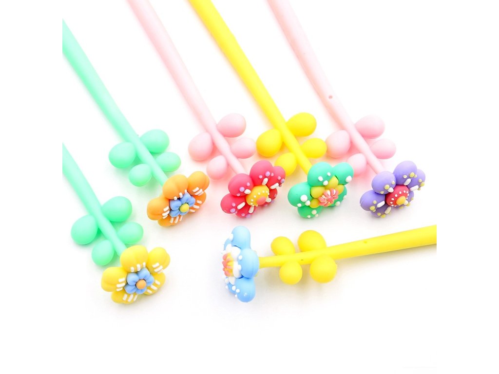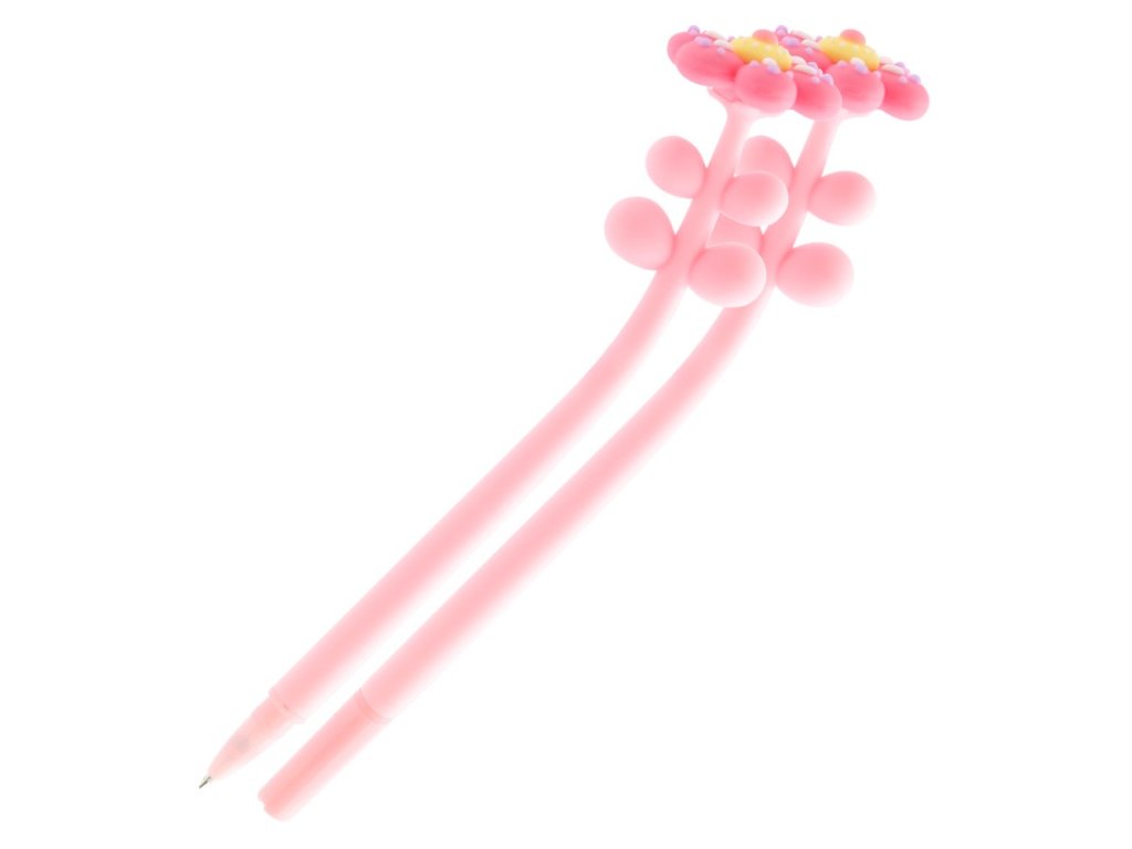 Dlhé gélové pero s gumenou kvetinkou na vrchnom, ohybnom konci (3 farby /3 dizajny).
