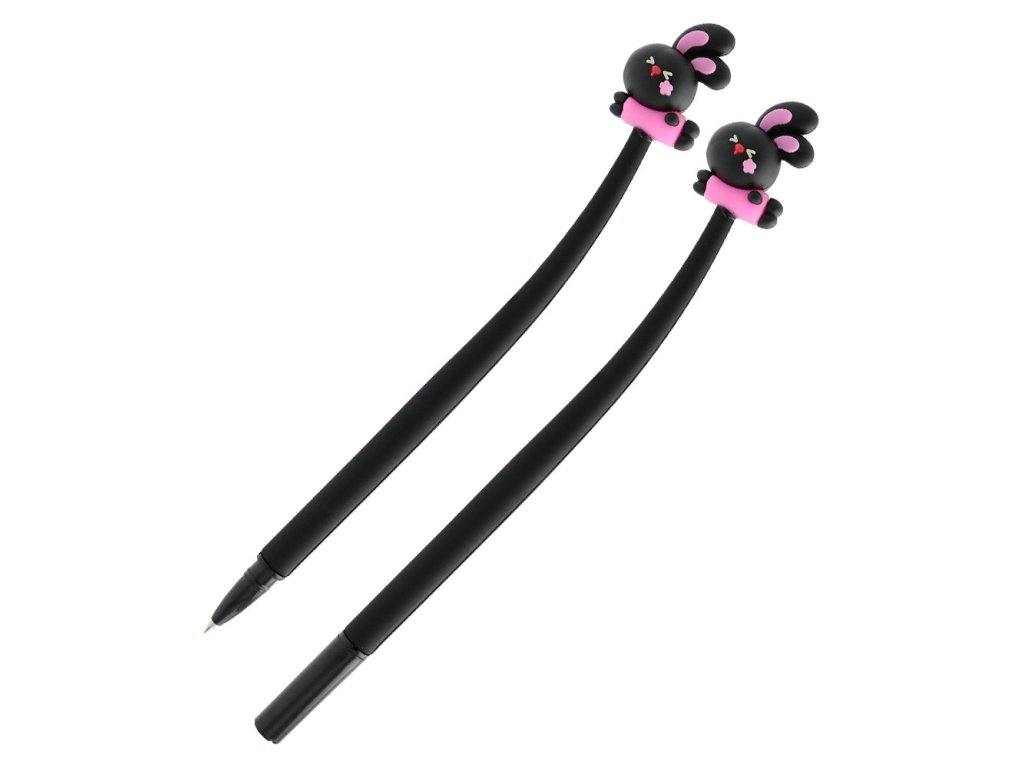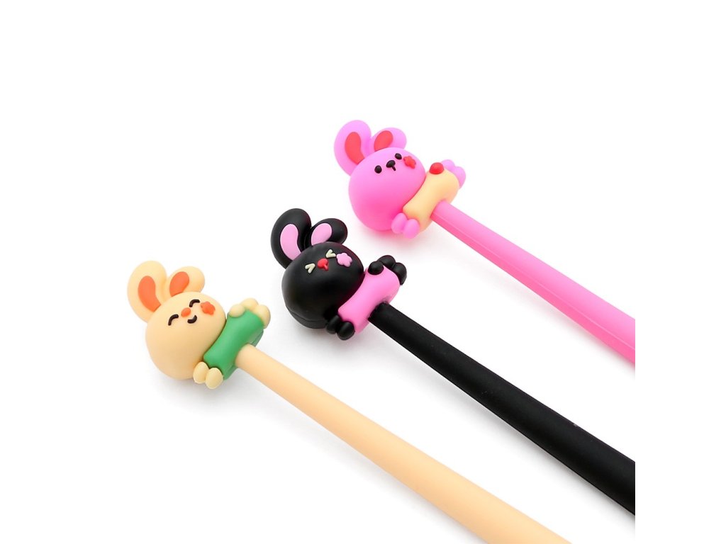 Dlhé gélové pero s gumenou figúrkou zajačika na vrchnom, ohybnom konci (3 farby /3 dizajny).
