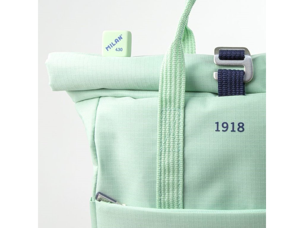 Séria 1918, zelená farba s tmavomodrými detailmi, inšpirované originálnymi farbami a dizajnom gumičiek MILAN, vyrábaných v Španielsku od roku 1918.