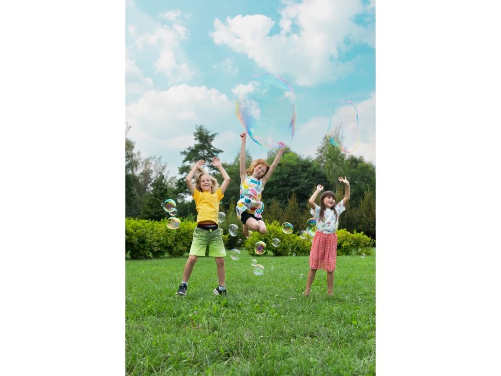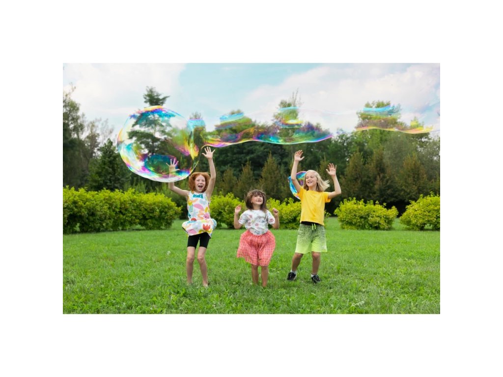 Urobte svojim deťom radosť, s bublinami sa každá párty stane nezabudnuteľnou. Tekutina umožňuje uvoľňovanie veľkých aj menších mydlových bublín. Je úžasná na hranie na záhrade, na terase, na pláži, na profesionálne bublinové show, aj na tvorbu rôznych bublinových trikov. Objem: 5 l.
