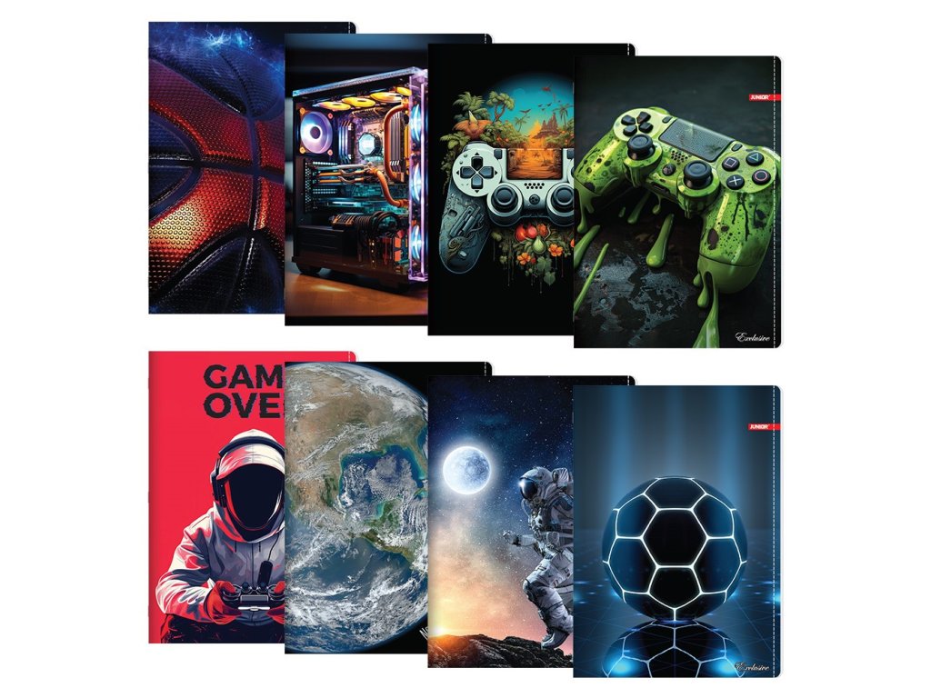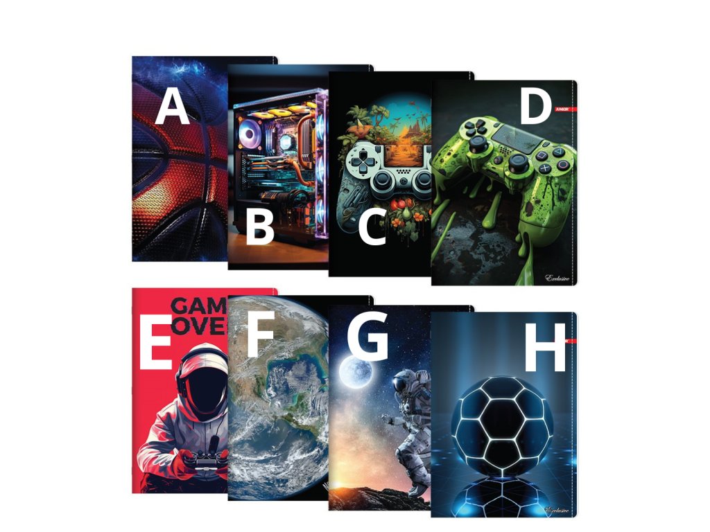 Štýlový školský linajkový zošit s atraktívnou obálkou. Obálka je potlačená rôznymi farbami, potiahnutá laminom a jednotlivé detaily UV lakom. Zošit A4, linajkový 444, 40 listový - design C.