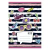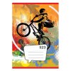 Školský zošit, vyrobený z bieleho bezdrevného papiera, formátu A5 s počtom listov 20. Linajkový. Liniatúra 12 mm.